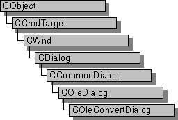 Klasa COleConvertDialog jest używana w oknie dialogowym Konwertowanie OLE. Utwórz obiekt klasy COleConvertDialog , gdy chcesz wywołać tego okna dialogowego. Po obiekt COleConvertDialog został wybudowany, aby zainicjować wartości lub Państwa formantów w oknie dialogowym można użyć struktury m_cv . Struktura m_cv jest typu OLEUICONVERT. Aby uzyskać więcej informacji o korzystaniu z tej klasy okna dialogowego zobacz opis funkcji członek DoModal.