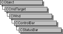 Объект CStatusBar представляет панель управления находится ряд областей вывода текста или "показателей". На панели вывода обычно используются как строк сообщений и как индикаторы состояния. Примеры включают меню Справка сообщение линии, которые кратко объяснить команды выбранного меню и показатели, которые показывают статус SCROLL LOCK, NUM LOCK и других ключей.
